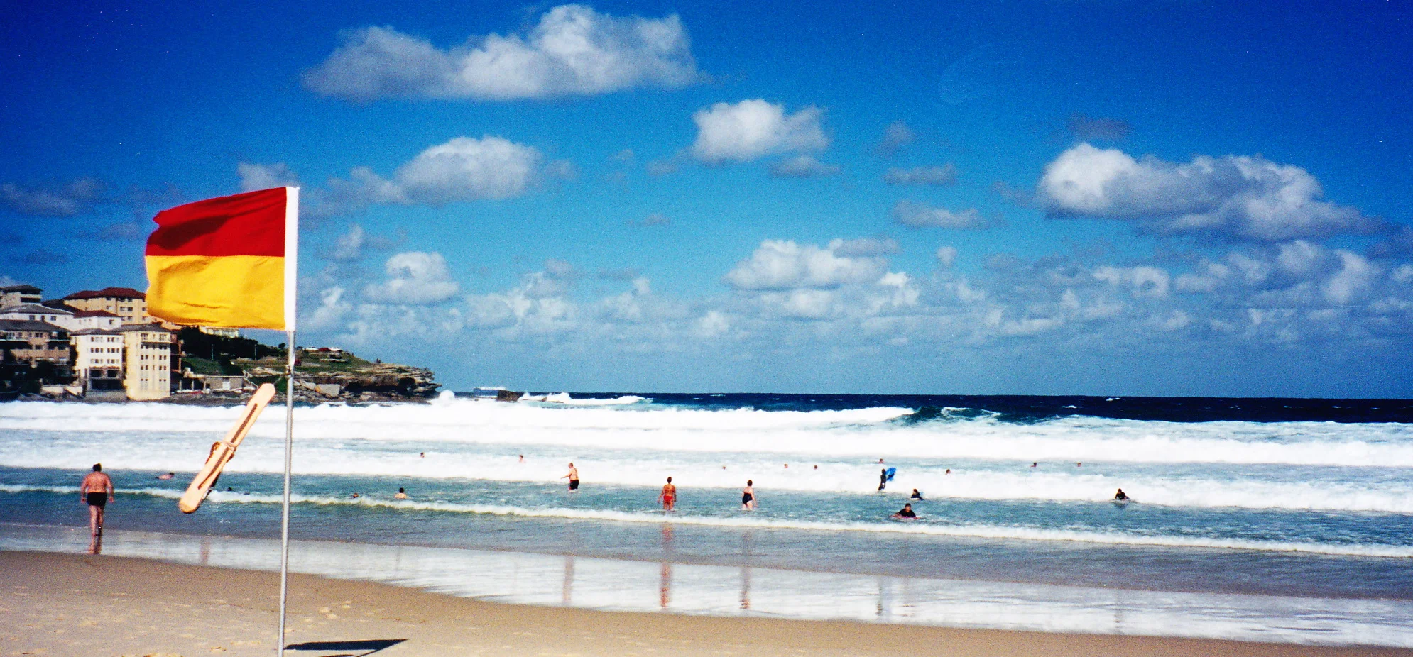 Today I headed back to Bondi. It's cheaper and I thought I would give it another try. I'm trying to limit my spending a bit and don't want to hit the ATM again if I can avoid it. The weather this AM was fair. A few high clouds that pretty much covered the whole sky by the time I got toBondi. But I was there so I set myself up on the beach. Bondi is in a pretty large cove and has a decent size beach. But there was a surfing competition going on, so a third of the water was off limits to swimmers. Now here's the part I don't get, they have these lifeguards, and even junior lifeguards on duty, but they limit the swimming area. You are supposed to swim between the flags for safety purposes. Something I really didn't do at Manly, but the surf wasn't so bad there. Anyways, the flags are on the beach and are about 50 yards apart. So all three thousand people who come to the beach on a Saturday are supposed to swim in the zone between the flags. Hello, reality check. And swimming in that area isn't easy. There was a serious rip that pulled you down the beach to the left, so you would spend a lot of time swimming to the right to counter act the rip. The surf was excellent, but there were just too many people, so I ended up bailing.
