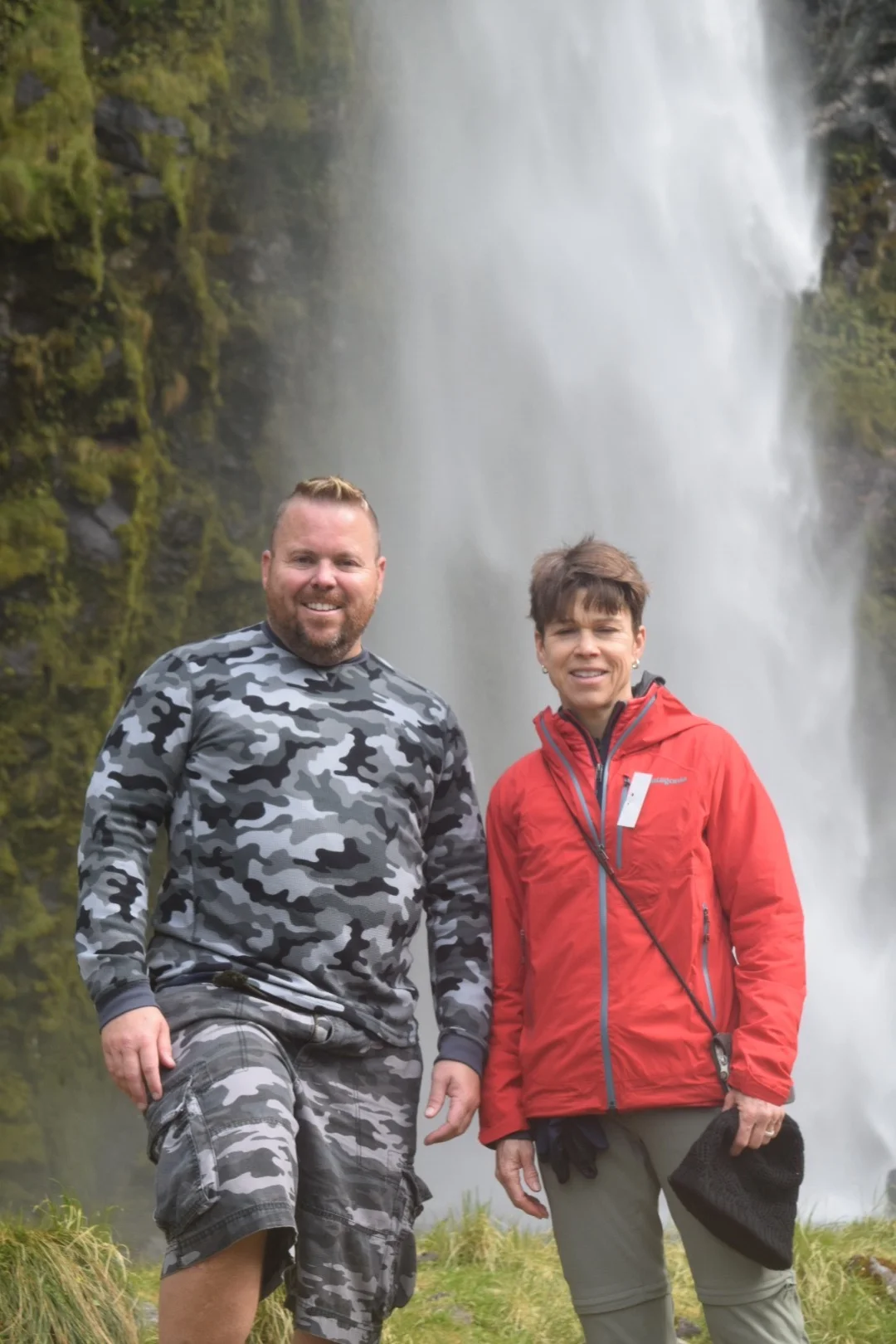 I drop my bag, use the facilities and then Sarah Beth and I are on an optional hike. Because the 9 miles we walked up and down Mackinnon Pass wasn't enough. We are off to see the Sutherland Falls. These are the falls that made the Milford Track famous and the original discoverer claimed that the falls were a mile high. Well, they are pretty big, but not a mile high. Technically they are 580 meters high, so like a third of a mile. Now the guides weren't exactly honest when discussing this hike. They claimed it was flat. Wrong! Up and up we went, down and down we went. Over two swing bridges. And it's almost 1.5 miles to the base of the falls. Which are definitely worth the hike even if my feet were complaining the whole time. There's a small pool at the bottom of the falls and I totally would have gone for a swim if someone had told me we could beforehand. I didn't have my pack with my swimsuit and walking back in my wet shorts would have caused some serious chaffing issues. By the time we get back the lodge, the bar is open so Sarah Beth and I have a glass of wine or two before dinner.
